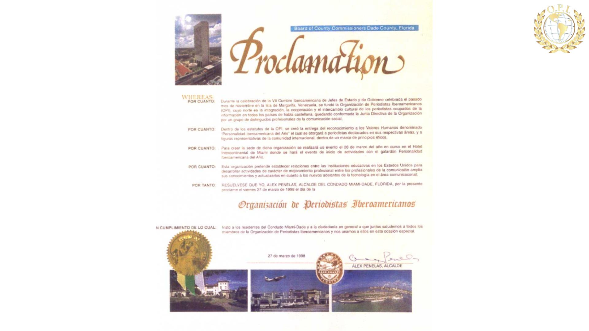 En Miami: Reconocimientos oficial otorgado a la Organización de Periodistas Iberoamericanos (OPI)