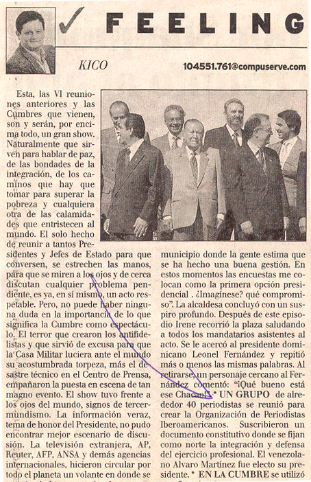 Afortunadamente, desde el mismo nacimiento de la Organización de Periodistas Iberoamericanos (OPI) se produjo una suma de voluntades que se concretó con la firma del acta constitutiva de la institución por 40 periodistas de 21 países iberoamericanos, presentes en el cumplimiento de su misión de informar en la VII Cumbre Iberoamericana de Jefes de Estado y de Gobierno, reunida en Porlamar, Isla de Margarita, Venezuela, en noviembre de 1997.