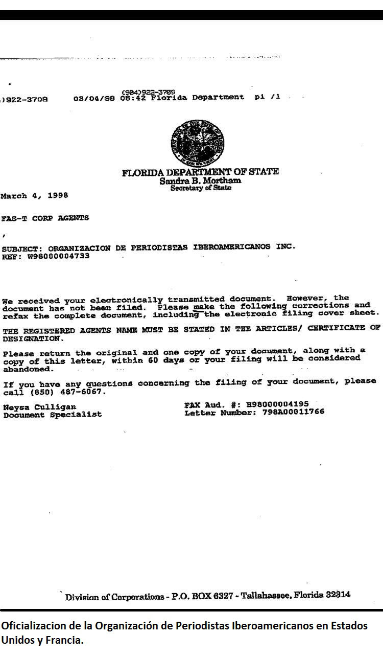 Oficialización de la Organización de Periodistas Iberoamericanos en Estados Unidos y España.